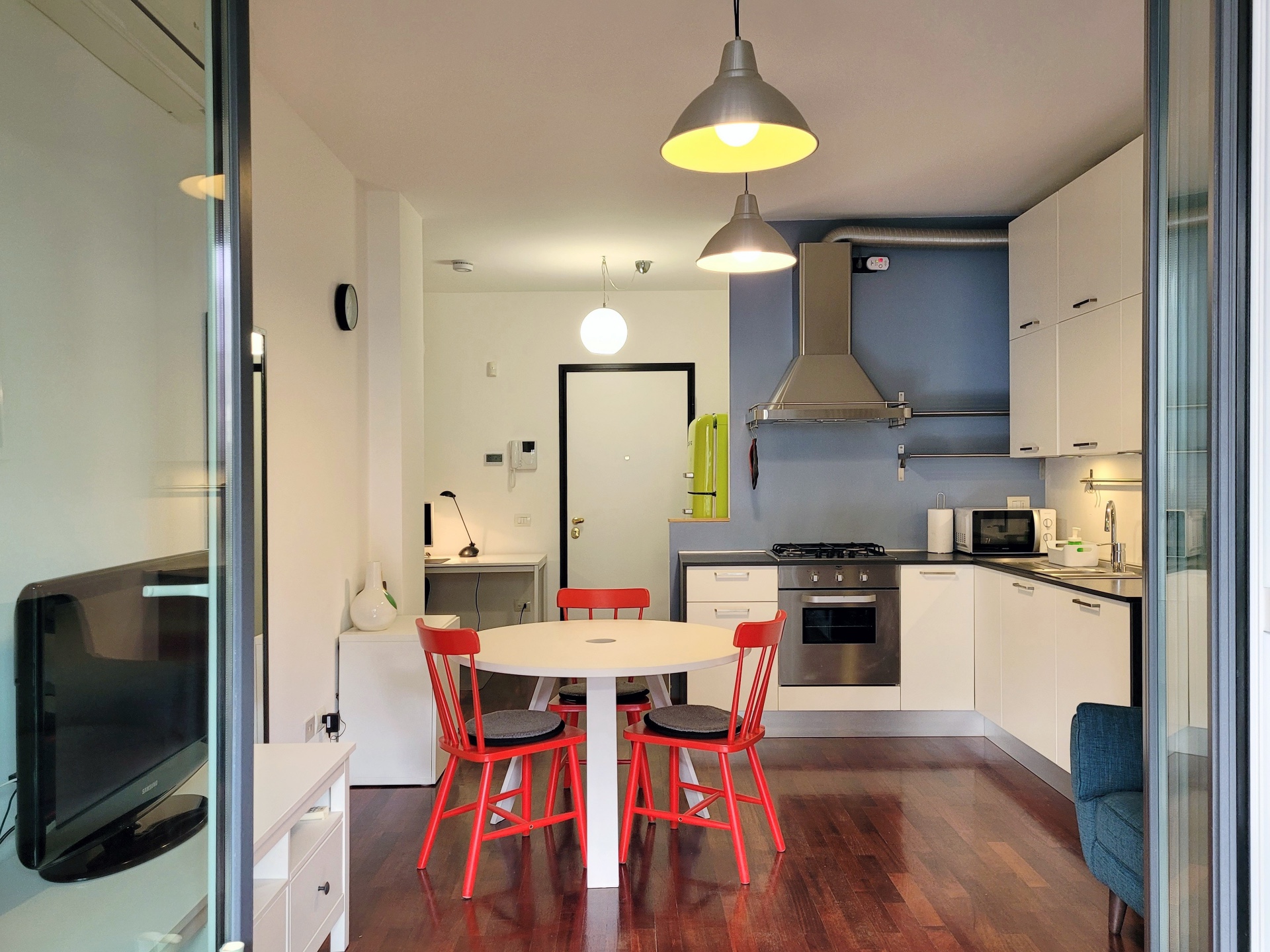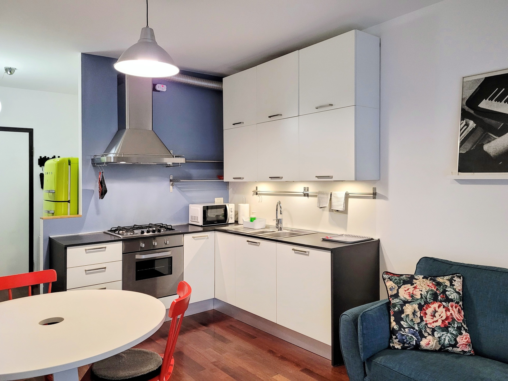 L'esclusivo spazio di 50mq+25mq di terrazza si trova al secondo piano di una palazzina signorile di quattro piani, con ascensore. È composto da un ampio ingresso con area smart working dotata di scrivania e comoda poltrona da lavoro; un luminoso salone con accogliente zona relax e cucina moderna a vista provvista di tutto ciò che può rendere sereno il tuo soggiorno; una camera da letto confortevole con letto matrimoniale, grande armadio fornito e un delizioso bagno finestrato completo di tutto.